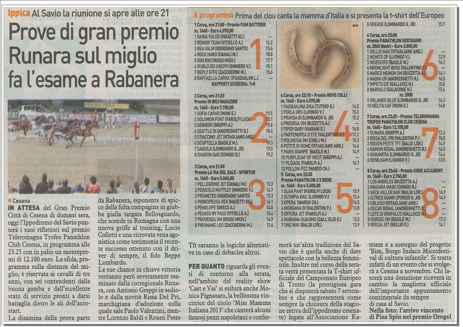 Venerdė 9 agosto - Premio Teleromagna - Trofeo Panathlon Club Cesena: Articolo del 09/08/2013 - Pagina n° 9