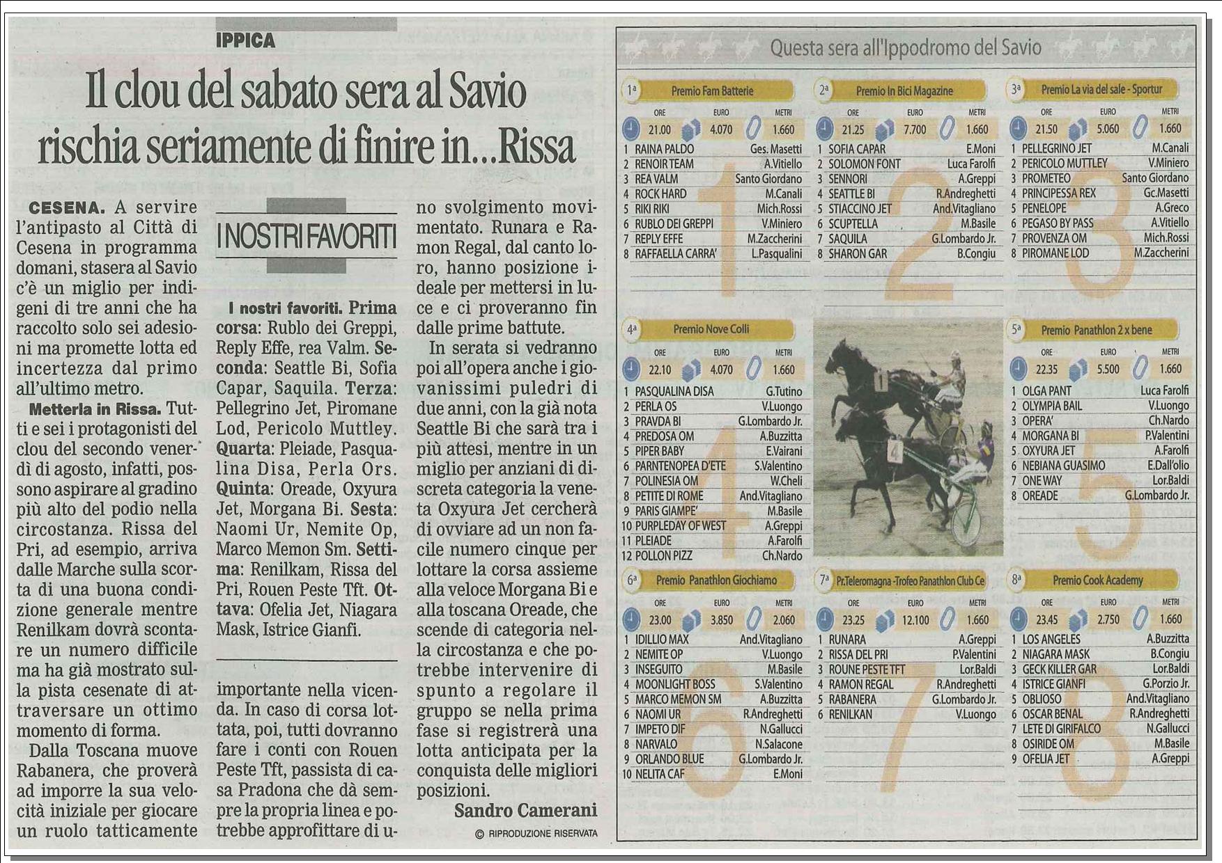 Venerdė 9 agosto - Premio Teleromagna - Trofeo Panathlon Club Cesena: Articolo del 09/08/2013 - Pagina n° 45