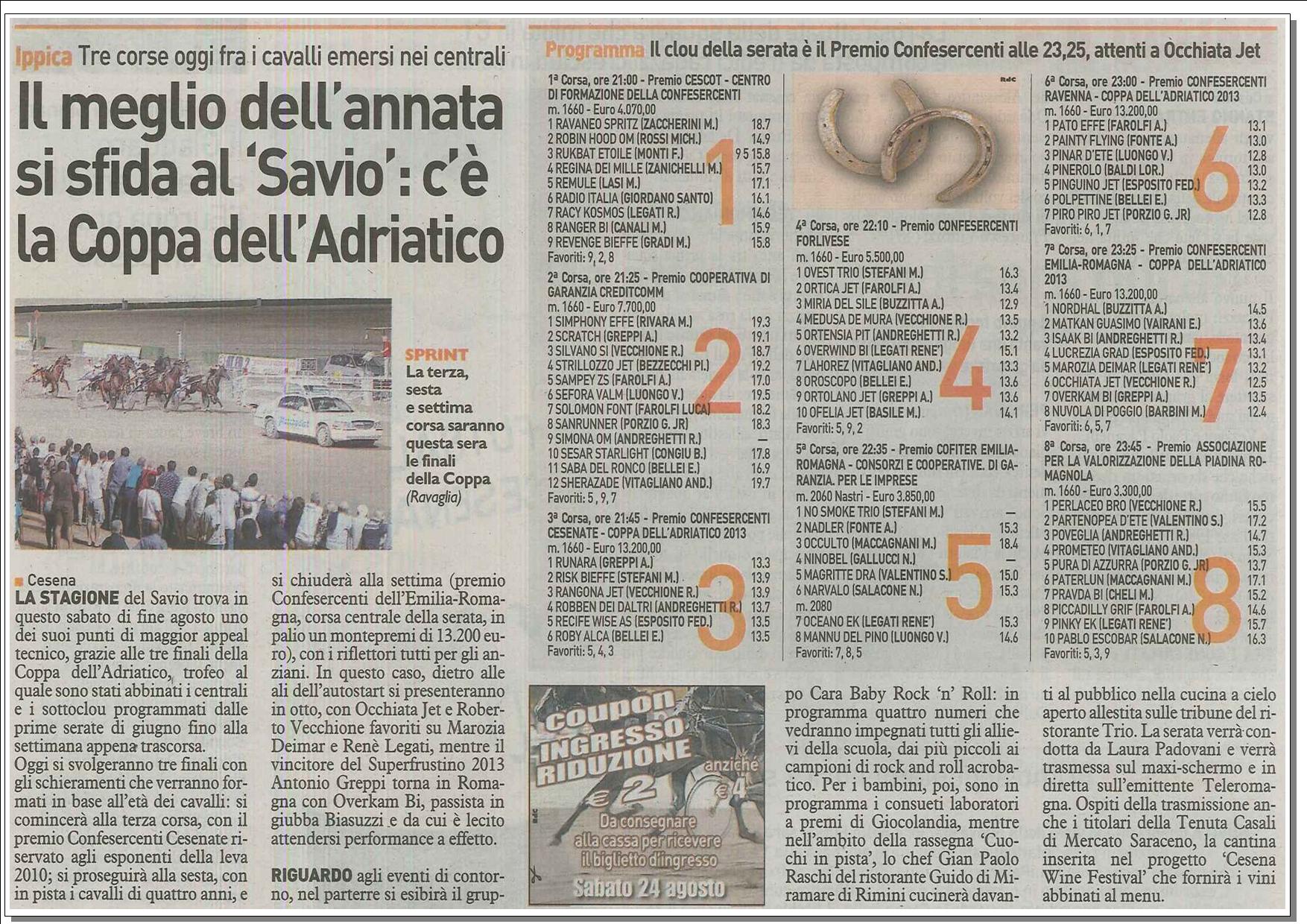 Sabato 24 agosto - Tr. Confesercenti Cesena, Forlì, Ravenna - Coppa Adriatico: Articolo del 24/08/2013 - Pagina n° 8