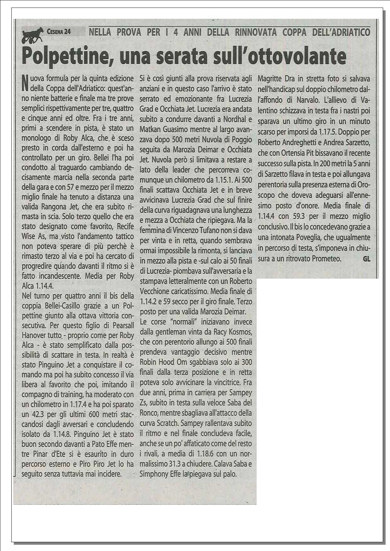 Sabato 24 agosto - Tr. Confesercenti Cesena, Forlì, Ravenna - Coppa Adriatico: Articolo del 27/08/2013 - Pagina n° 32