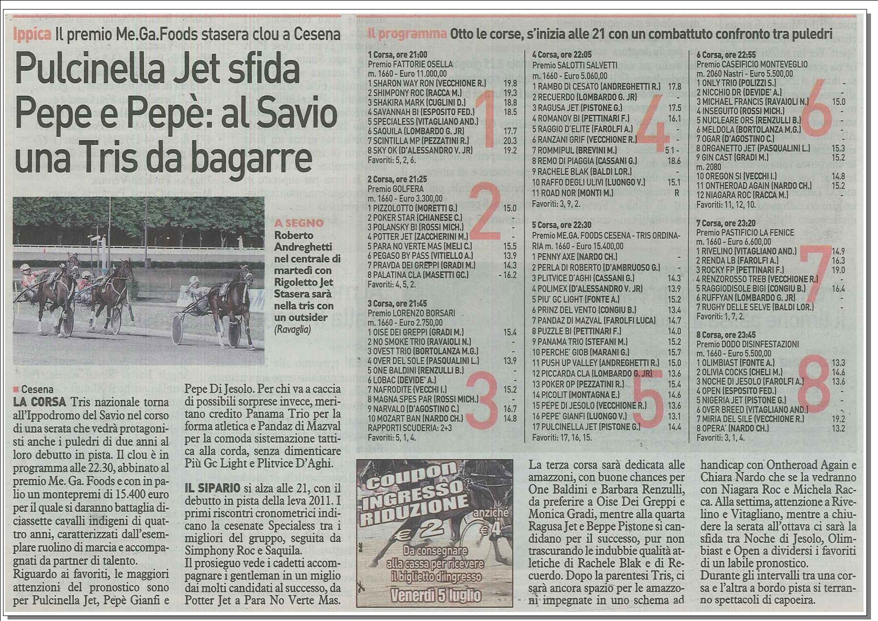 Venerdė 5 luglio - Premio ME.GA. FOODS - TRIS: Articolo del 05/07/2013 - Pagina n° 10
